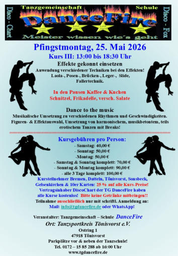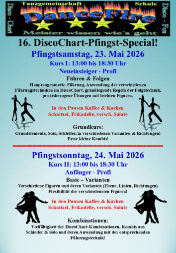 ACHTUNG --- Discochart Workshop über Pfingsten. Bitte rechzeitig anmelden --- ACHTUNG